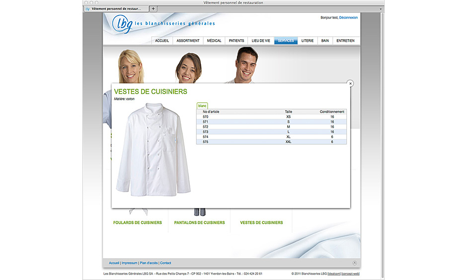 LBG à une large gamme de vêtements de travail et d’articles textiles qu’elle fournit aux spécialistes de la santé. Dans le cadre du relooking de son site internet, LBG souhaitait inclure un catalogue en ligne afin de présenter ses produits.